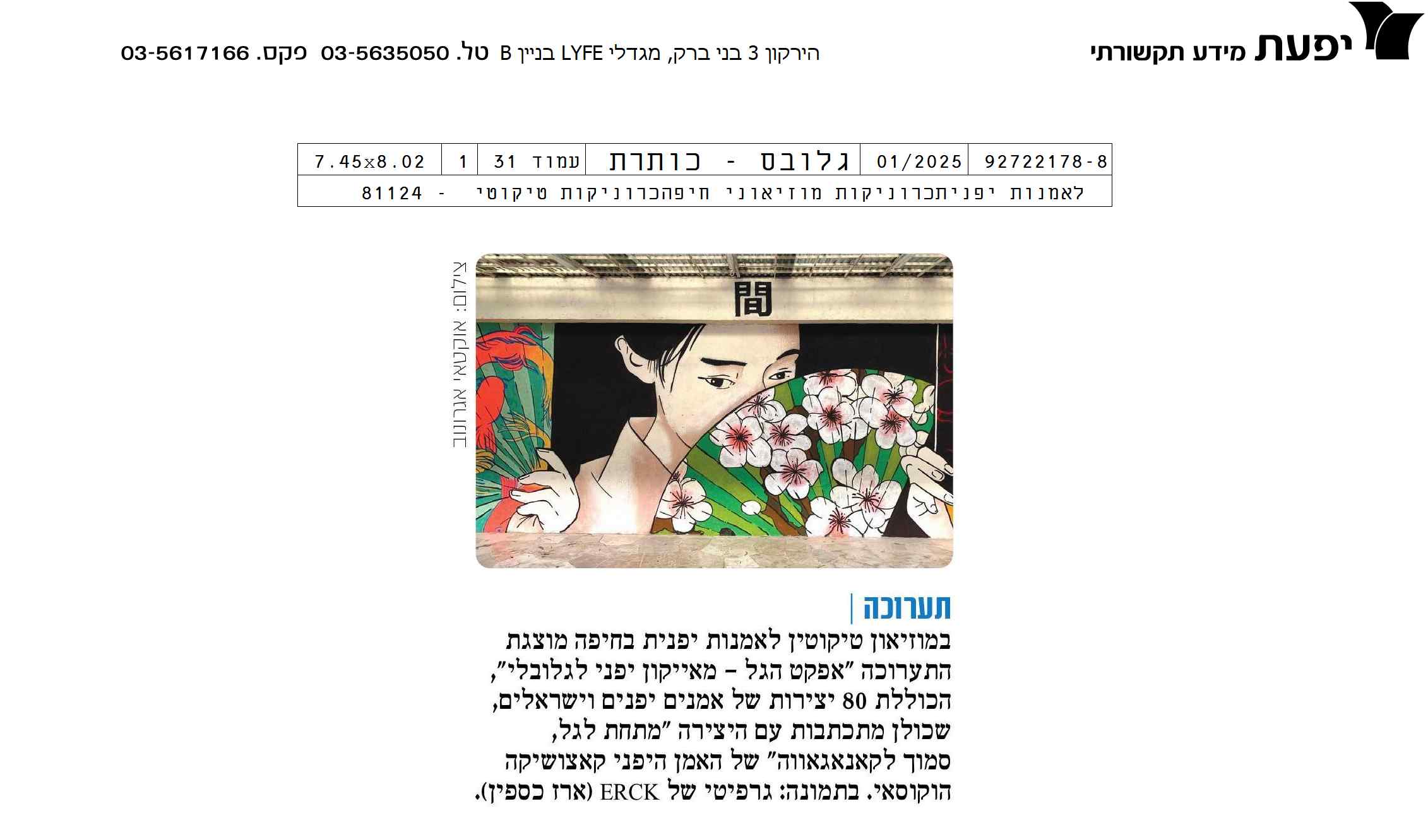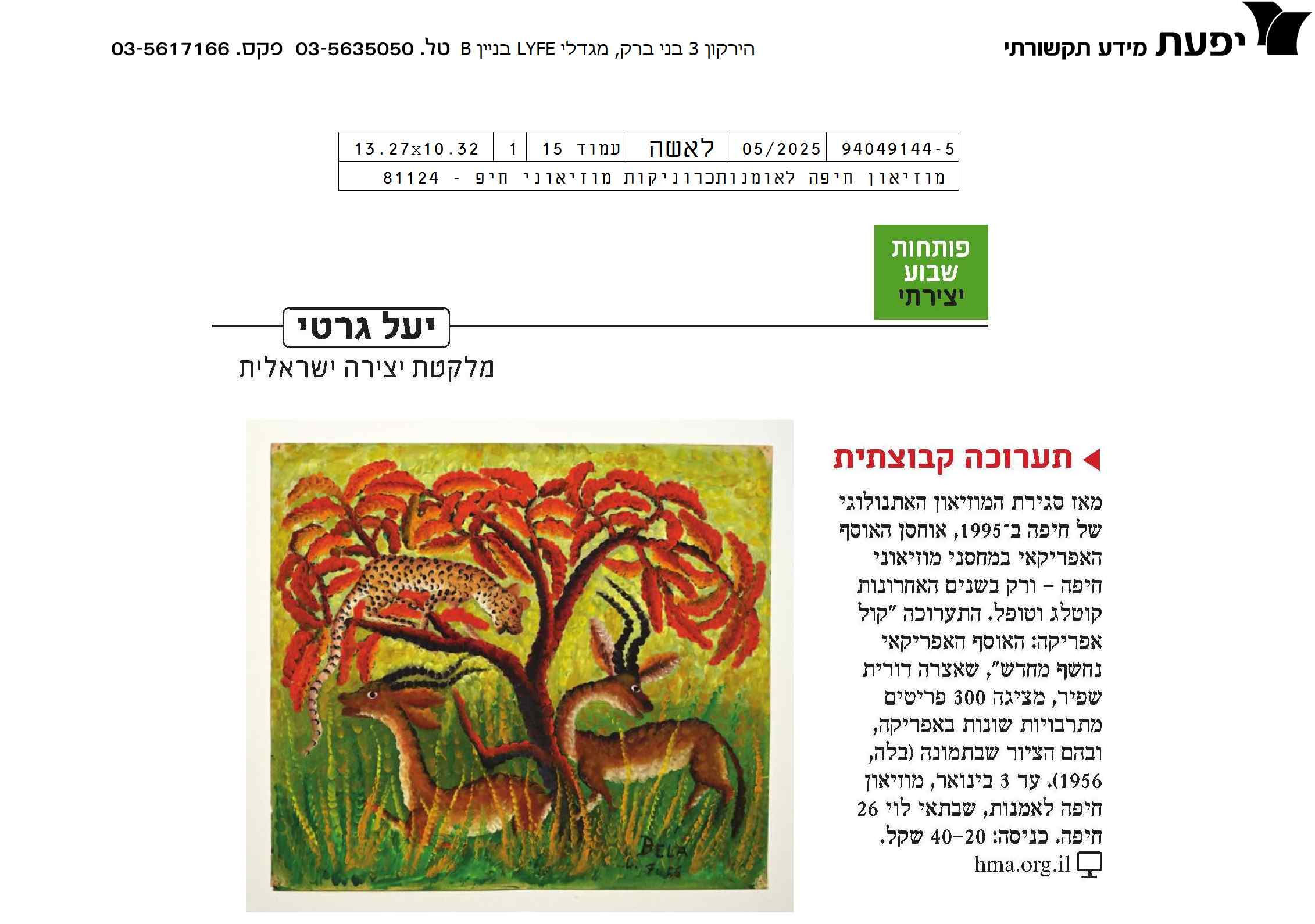 בעמוד זה תוכלו למצוא כתבות והודעות לעיתונות על ששת מוזיאוני חיפה.