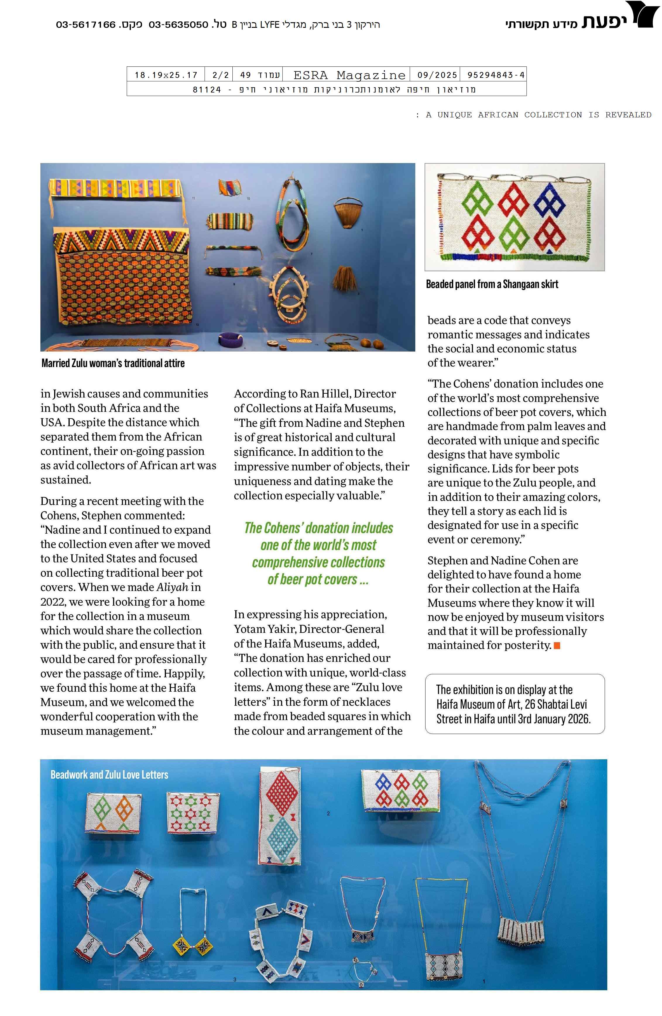 On this page, you can find articles and press releases about the six Haifa Museums.