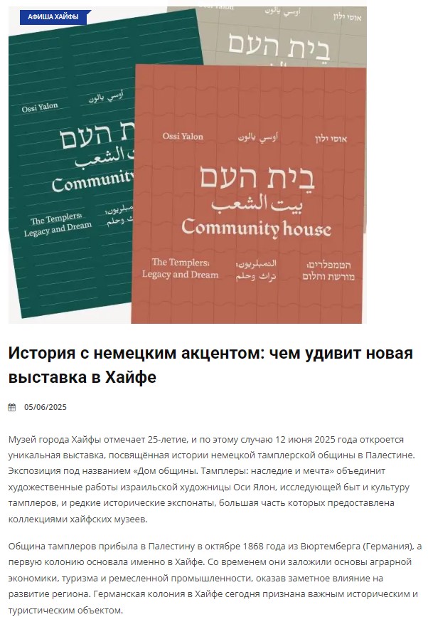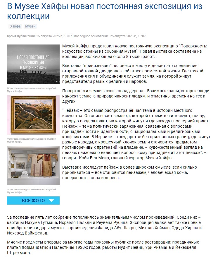 На этой странице вы можете найти статьи и пресс-релизы о шести Музеях Хайфы.